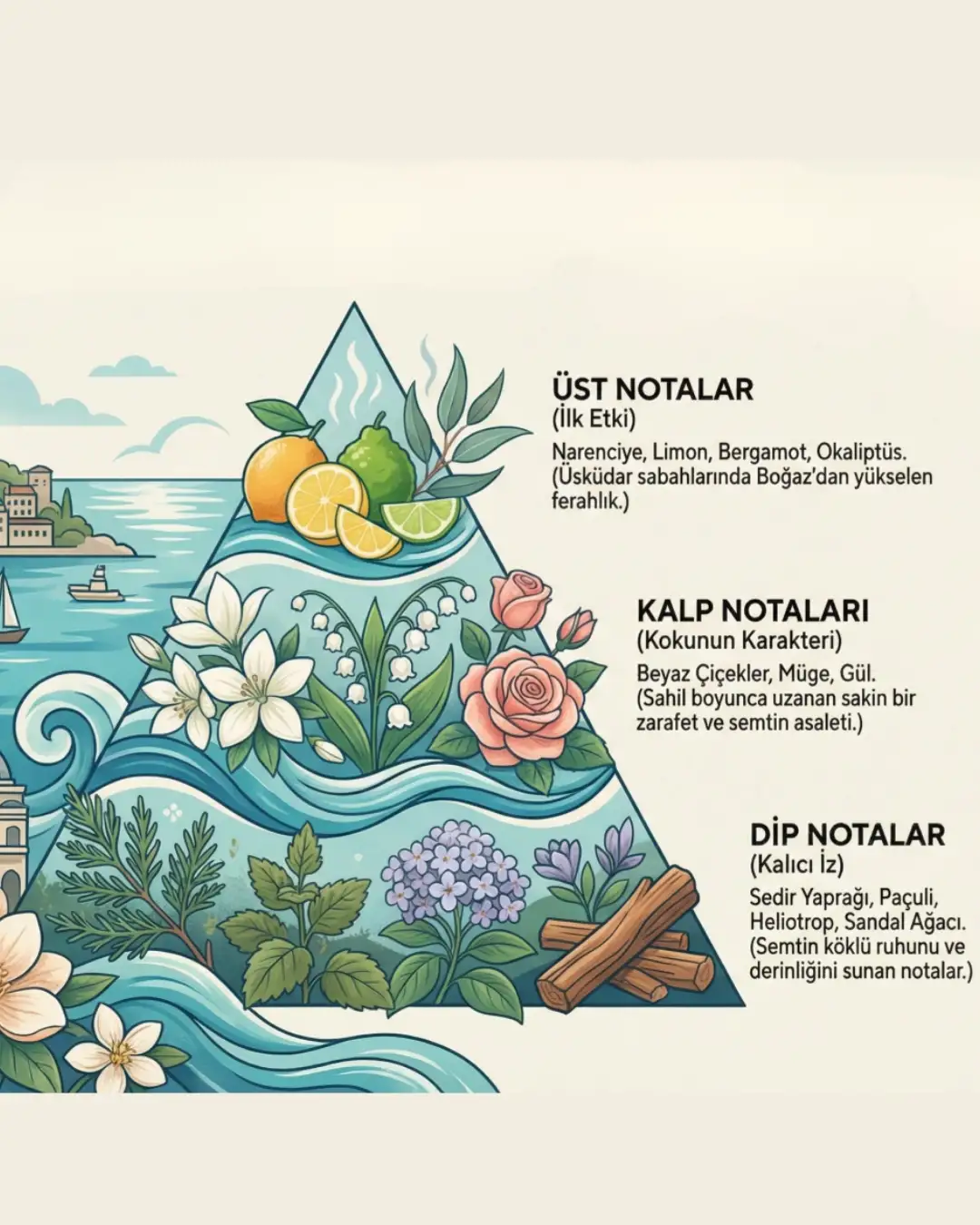 Dip Nota: Sedir Yaprağı, Paçuli, Heliotrop, Sandal Ağacı